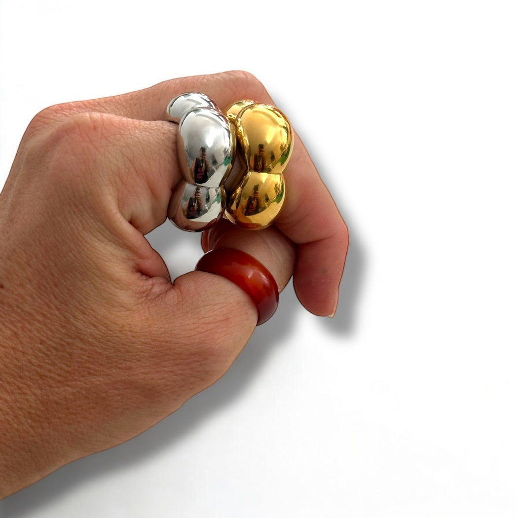 The chunky, sculptural shape is reminiscent of soft clouds or blooming flowers, adding a fun, artistic vibe to your jewelry collection. Offered in size N 1/2, this ring is designed to stand out and command attention. Perfect for those who love to wear eye-catching, conversation-starting pieces.