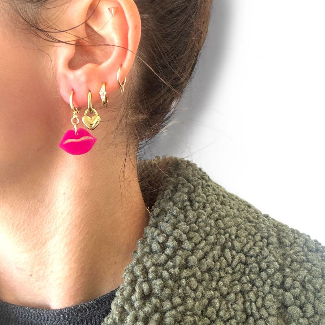 These gold-plated huggies are your new everyday heroes – designed for stacking, styling, and standing out. Each pair features a unique Perspex charm, dreamt up by DRIP and laser cut in Cape Town. Whether it’s a bold squiggle, a cheeky icon, or a pop of color, every charm adds personality without the weight.
